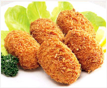 所謂漿粉,是加入水或雞蛋,以液體的狀態使用預拌粉。像直接以漿液作為外皮這樣的天婦羅商品,或者以漿液作為粘著劑再粘上面包糠來完成的商品等,有多種不同的用法。一般的做法是基本上與打底粉同時使用。